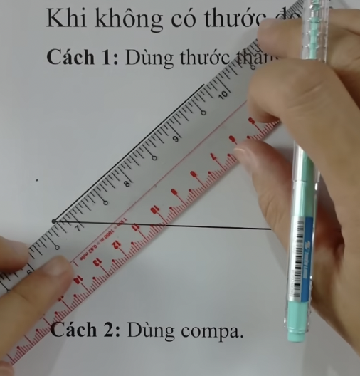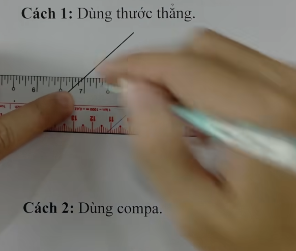 Bước 1: Chúng ta sẽ đặt thước thắng và vẽ 1 đường song song